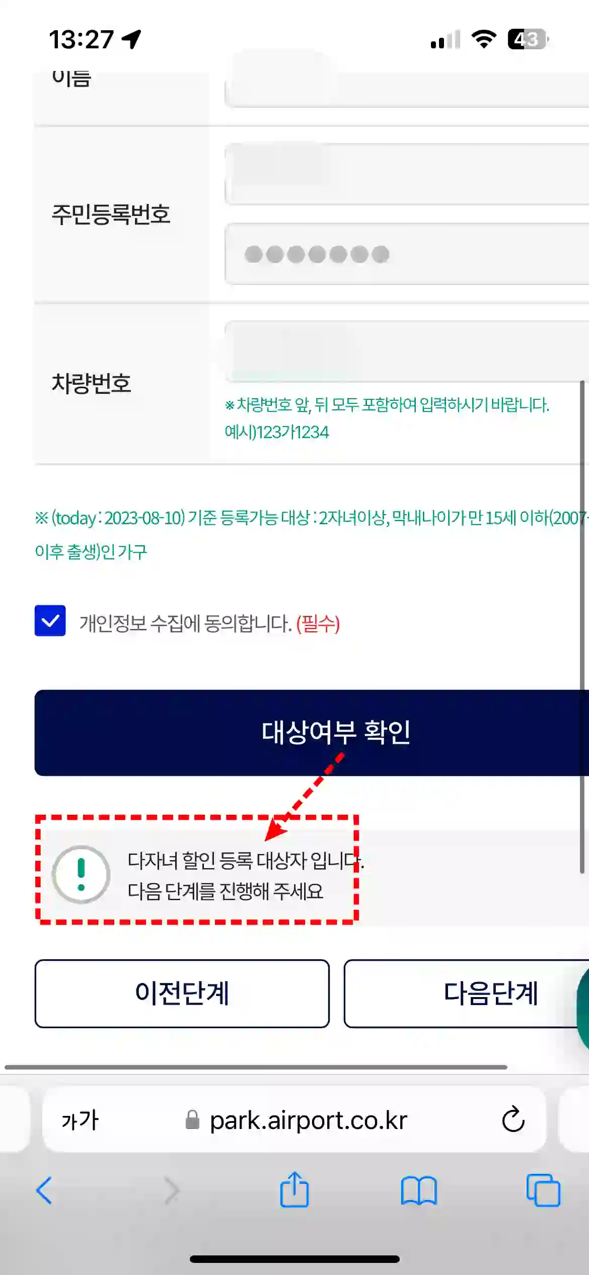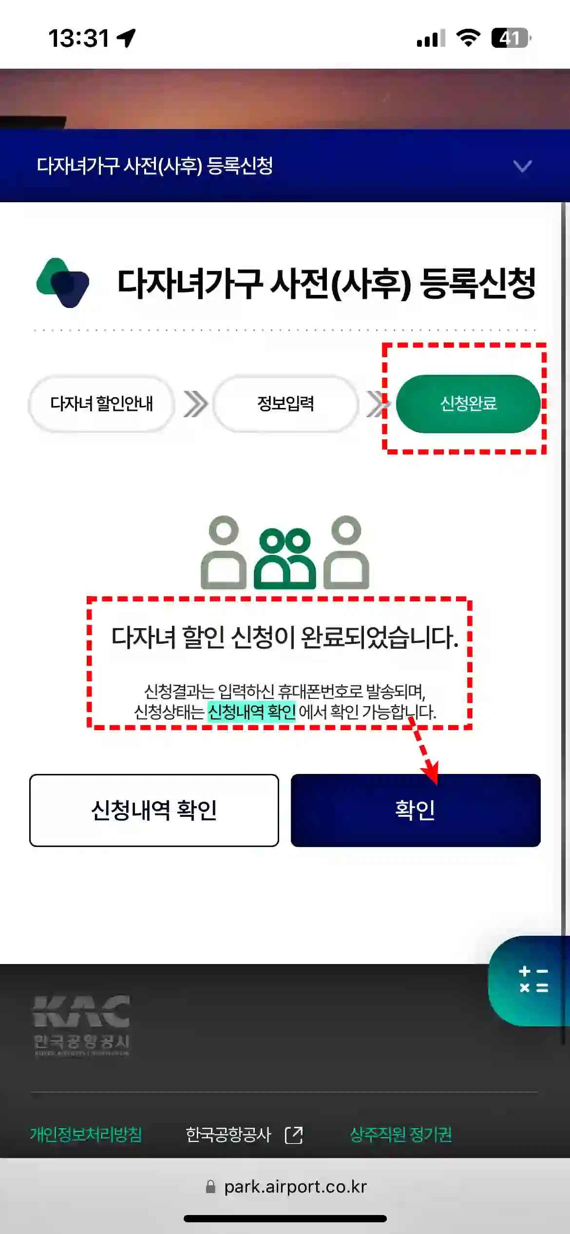 만약 입차 전 사전등록을 놓쳤다면, 출차 후에도 다자녀 할인 혜택을 신청할 수 있습니다. 신청 방법은 아래와 같습니다.