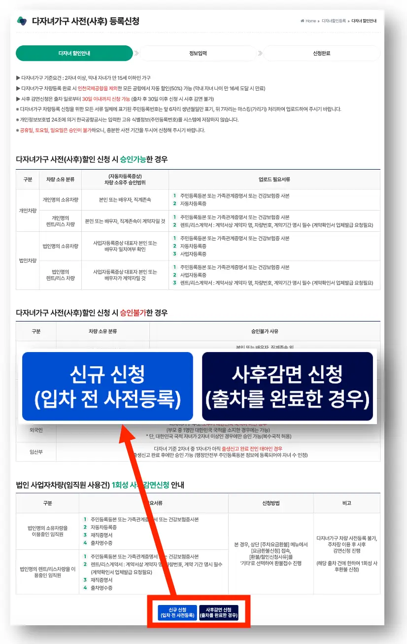다자녀 가구 사전 신규 신청 방법(입차 전 사전등록)