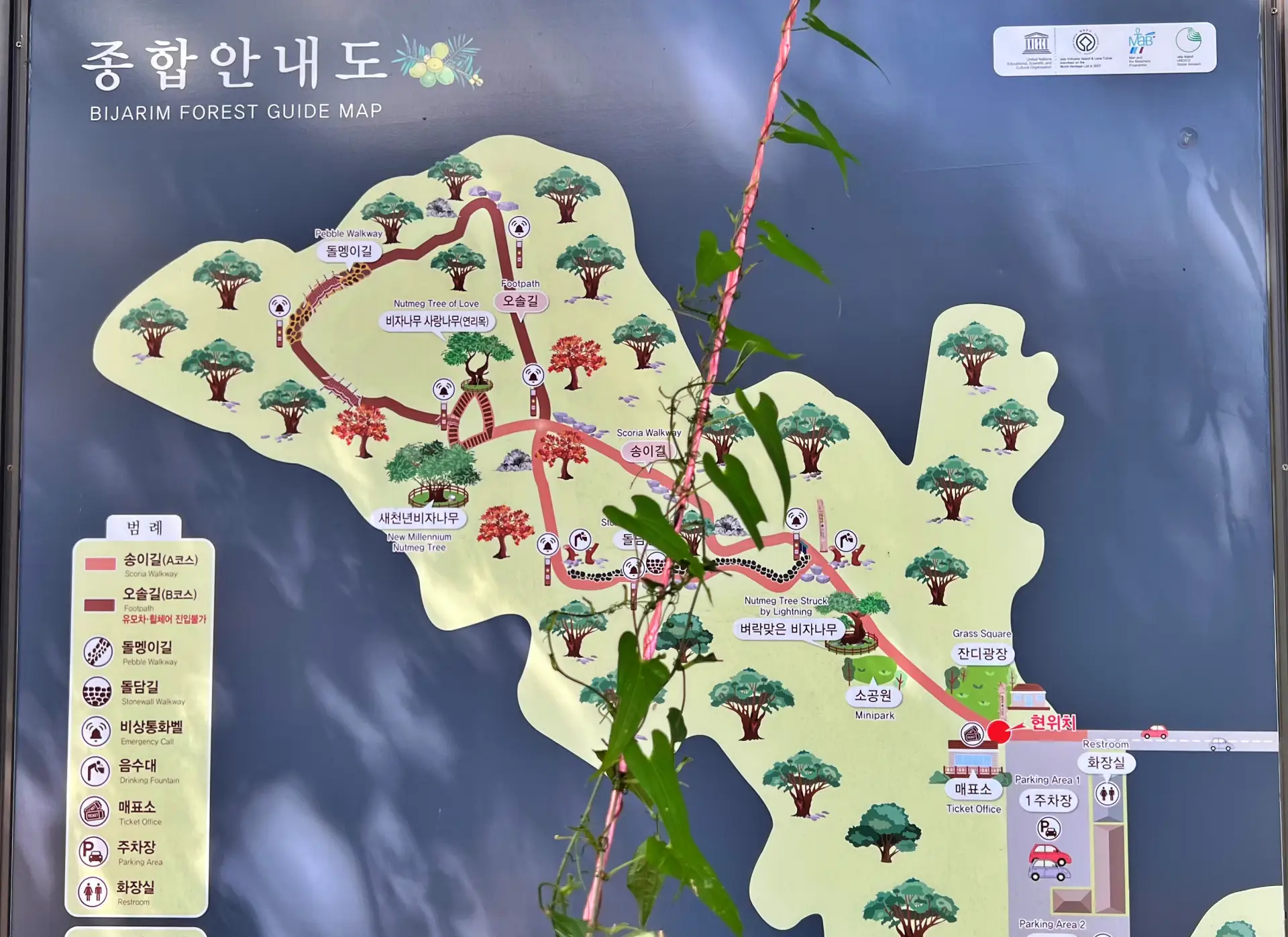 비자림 내부에는 다양한 산책로가 있어, 가족이나 연인과 함께 편안한 산책을 즐길 수 있습니다. 산책로는 A, B코스로 나뉘며, A코스는 약 2.2km 길이로 A코스 기준 대략 40분 정도 소요됩니다. B코스는 길이 울퉁불퉁하여 휠체어나 유모차는 통행에 어려움이 있을 수 있습니다. 시간은 1시간 30분 정도 소요 됩니다.