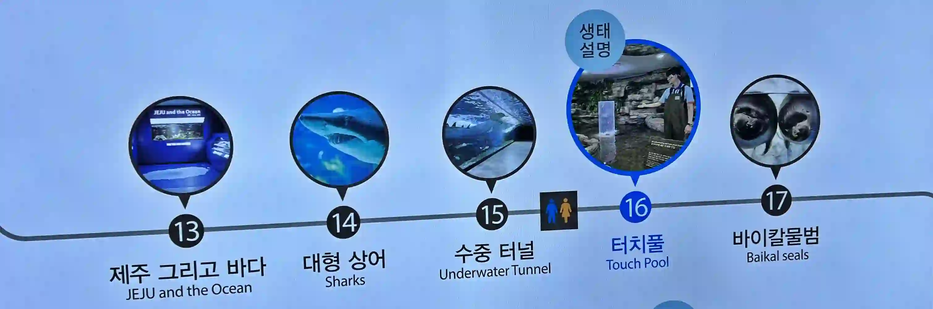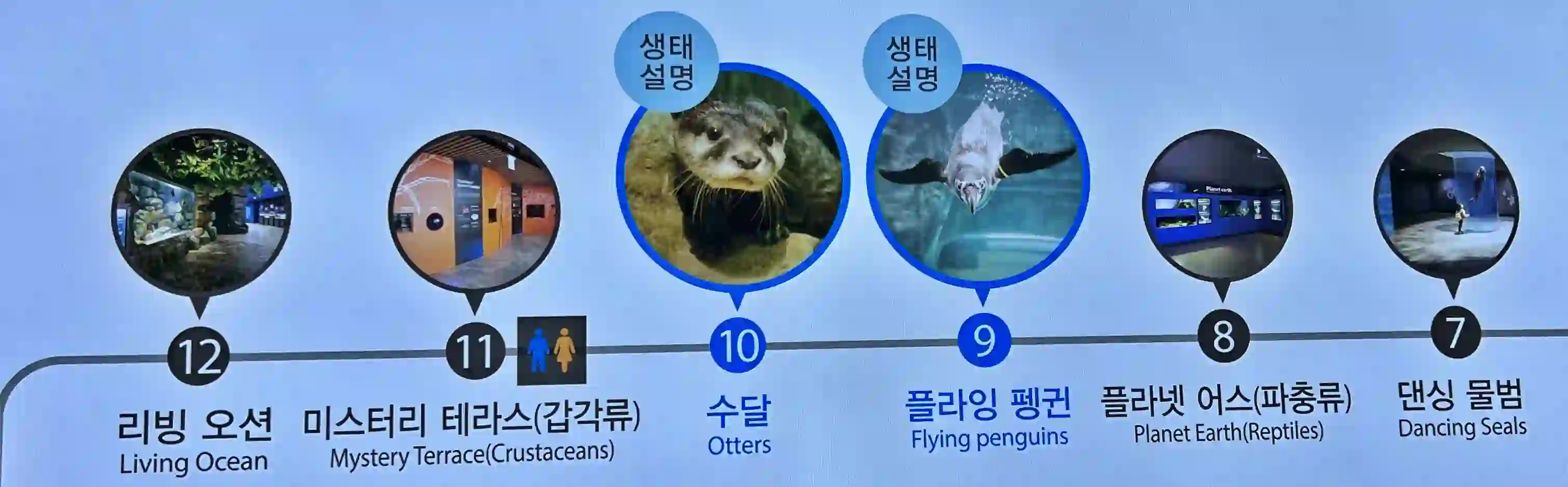 아쿠아리움에서 관람 후 재입장시에는 공간이 제대로 이해가 되지 않을 수 있고, 복잡합니다. 아래 사진을 확인해주시길 바랍니다.