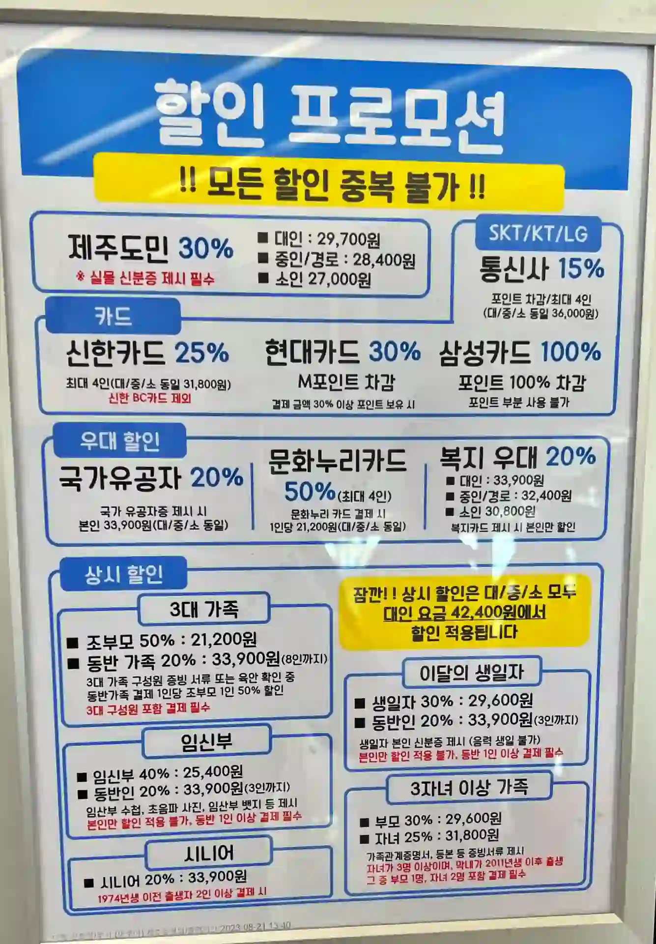| 복지우대 | 대인 | 20% | 33,900 | 본인만할인 |