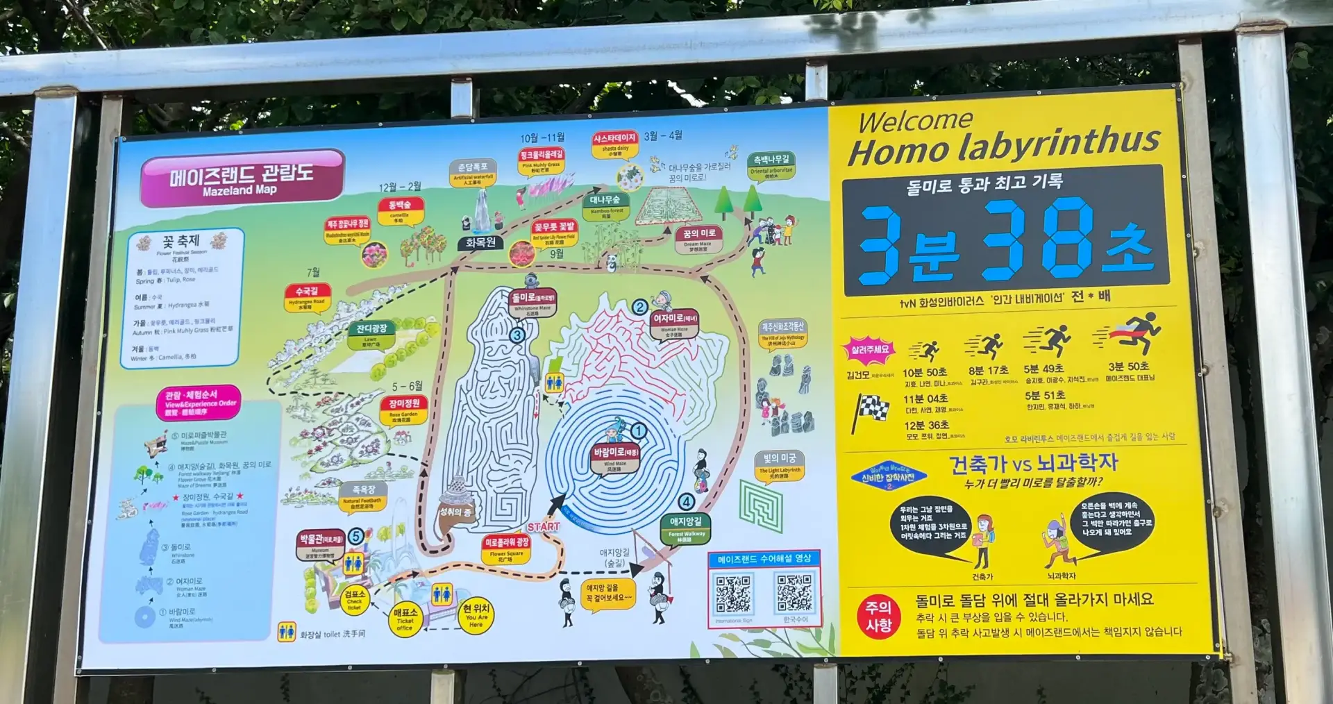 관람순서는 바람미로, 여자미로, 돌미로 순으로 관람을 하시고, 애지앙, 화목원, 미로퍼즐은 상황에 맞춰서 관람하시는 것을 추천드립니다.