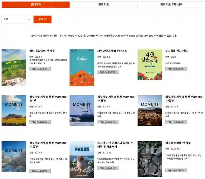 지도 외에도 제주도 안내 책자를 PDF로 무료로 다운로드할 수 있습니다. 개인 여행 특징에 맞추어서 미리 스마트폰이나, 태블릿에 다운로드하신다면, 알찬 여행이 될 것 같습니다. 우리나라이지만, 제주도에 대한 정보에 대해 몰랐던 것을 많이 알 수 있었습니다.